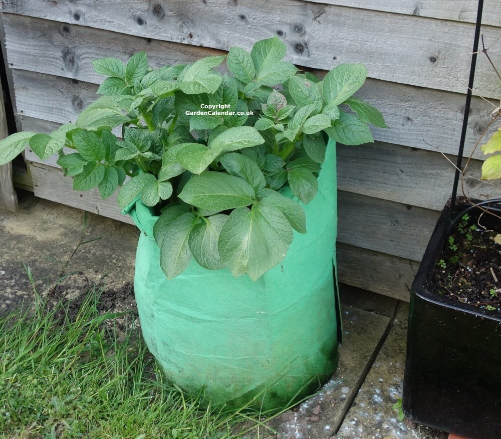 Many potato bags have a side flip cover at the base which is intended to make it easier to harvest the fully grown potatoes. It is however of little use, the best way to harvest potatoes in a container is from the top.