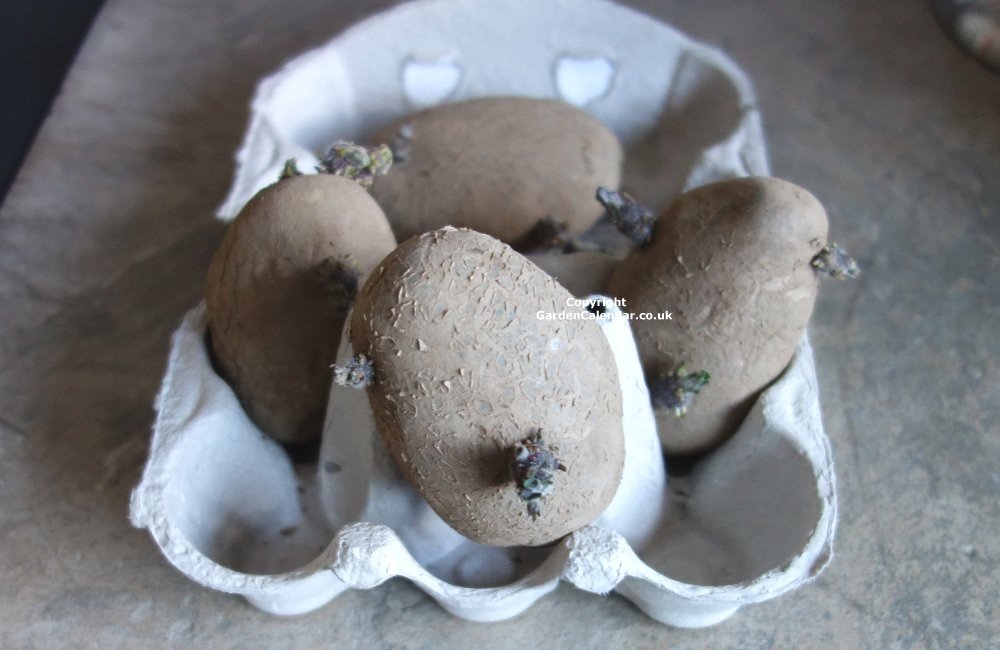 Planting out on this date will give the seed potatoes about six weeks before they reach the surface of the soil. Whilst they are growing towards the soil surface the sprouts will be protected from frost by the surrounding soil.